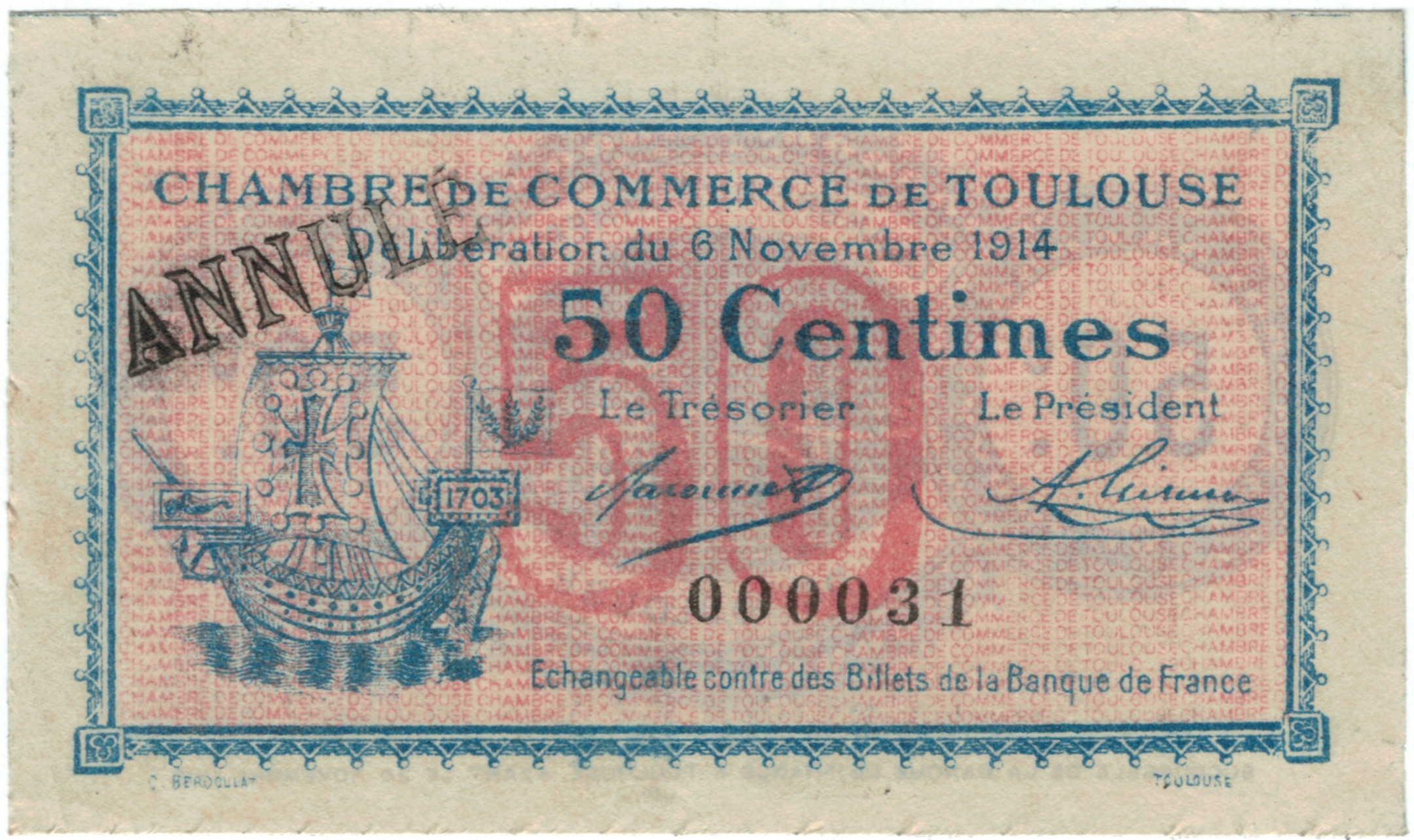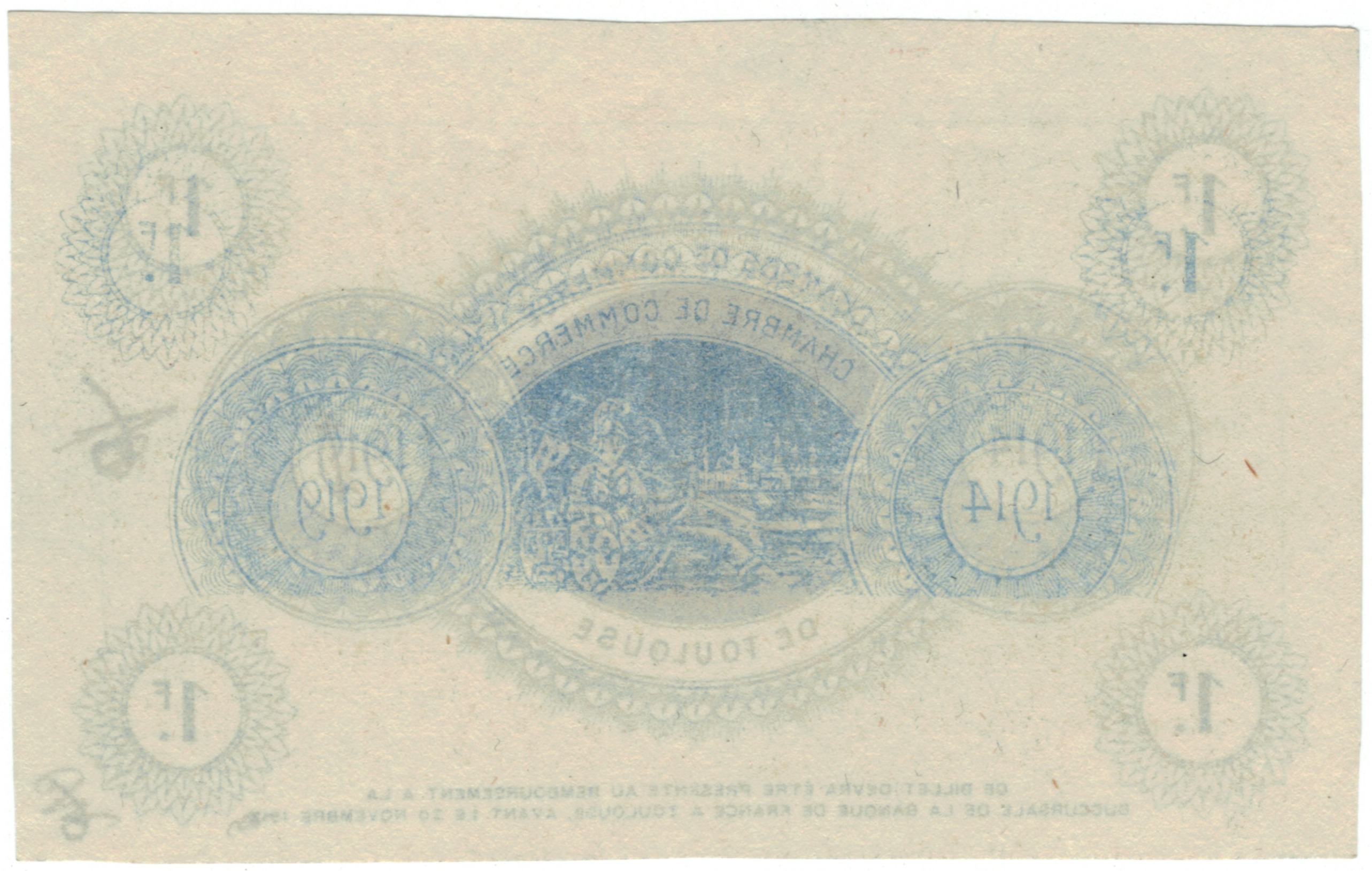 Chambre de Commerce de Toulouse entoure, dans un médaillon ovale,